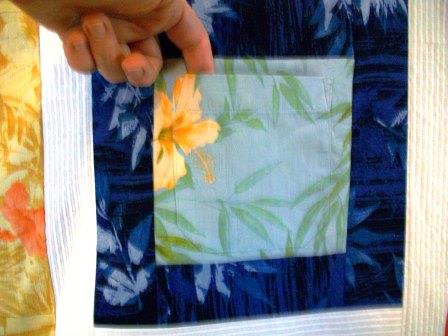The first memory quilt from the mostly Tommy Bahama shirts for my colleague's family is finished. It is machine pieced and quilted. The finished quilt measures 51 in X 66 in. The photo of the full quilt isn't the best but I am pleased with how it turned out.